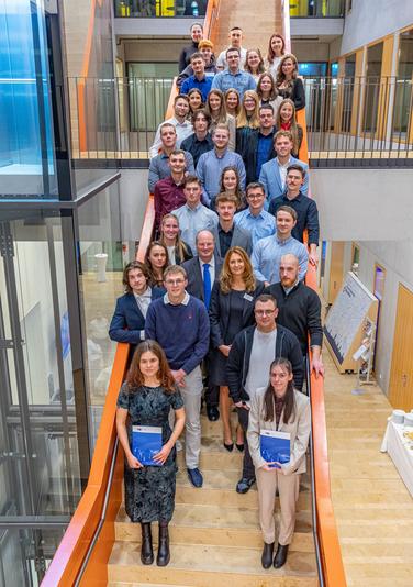 Bild-bestenehrung1_klein: IHK-Präsidentin Natasha Rohde (Mitte, unten) und IHK-Hauptgeschäftsführer Dr. Gunther Quidde (Mitte, unten) gratulieren den diesjährigen Prüfungsbesten.