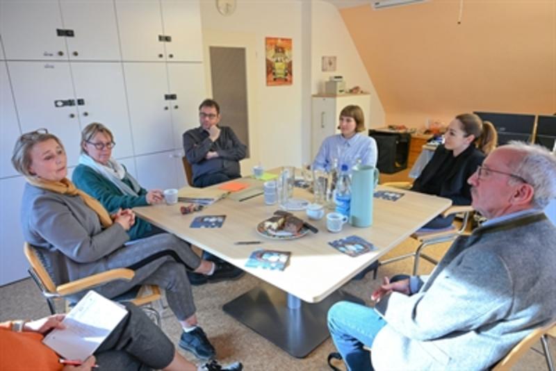 Bei der Stiftung Lichtblick trafen die beiden Frauen auf Horst Rühl, Pfarrer i. R. und seit Mai 2025 Vorsitzender des Stiftungsrates der Stiftung Lichtblick, Geschäftsführer Jörg Mair, Heike Zöppig, Leitung der Fachberatung für Wohnraumfragen und Beratung für Frauen, sowie Annette Geier-Neugebauer, Leitung der Hanauer Tafel.