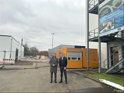 Ein weiterer Schwerpunkt des Besuchs war ein innovatives Energieprojekt am Standort: ALD baut derzeit eine kombinierte Lithium-Ionen- und Redox-Flow-Großbatterie auf, mit dem Ziel, künftig 40 bis 50 Prozent des Strombedarfs der ALD unabhängig vom öffentlichen Netz zu decken. Die Batterie speichert Strom aus Photovoltaik-Anlagen und wird durch eine eigens entwickelte Steuerungssoftware ergänzt, die Lastspitzen aus dem Netz abfedert. Das Projekt dient zugleich als Pilot- und Demonstrationsanlage für Kunden. „Es ist sehr erfreulich, dass Sie diese besondere Batterie auch als Demonstrationsobjekt hier an Ihrem Standort in Hanau realisieren“, sagte Dr. Bieri. „Langlebige Batterietechnik wird ein wichtiger Baustein im Rahmen unserer Energiewende sein.“