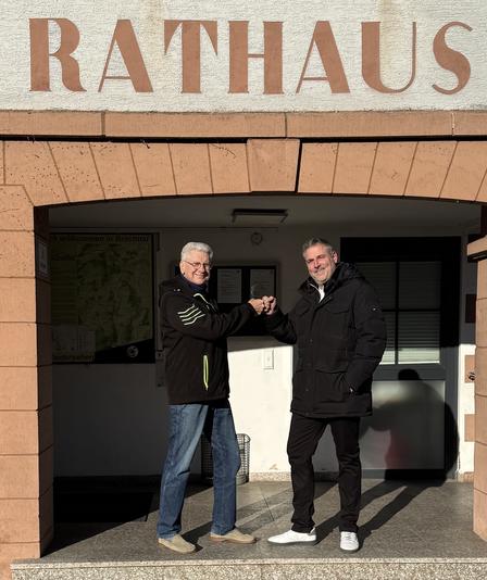 Auf dem beigefügten Foto sind Uwe Kirch (links), der 1. Vorsitzende, sowie Stefan Kroll (rechts), Kassenwart und Kandidat auf Listenplatz 1, vor dem Rathaus in Brachttal zu sehen.