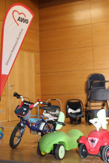 Neben Baby- und Kinderkleidung werden an 38 Tischen Babyausstattung, Auto- und Kindersitze, Kinderfahrzeuge, Kinderwagen, Spielsachen, Bücher und viele weitre Dinge zum Kauf angeboten.