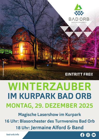 Bad Orb im Spessart, im Dezember 2025. Die Vorfreude auf den jährlichen Bad Orber Winterzauber steigt, denn am Montag, 29. Dezember 2025, wird der malerische Kurpark erneut Kulisse für ein buntes Winterparadies. Unter dem klaren Winterhimmel erstrahlt die über 100 Jahre alte Parkanlage in einem Meer aus Lichtern, Farben und Effekten, die die Besucher in ihren Bann ziehen werden. Erstmals wird der Winterzauber dabei durch eine Lasershow ergänzt, die mit modernen Licht- und Laserprojektionen zusätzliche visuelle Akzente setzt.