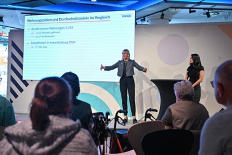 Neben den wirtschaftlichen Kennzahlen hat Mirja Dorny auch die strategische Ausrichtung des Unternehmens konsequent weiterentwickelt. Themen wie Klimaneutralität und CO2-Reduktion, nachhaltige Quartiersentwicklung, eine stärkere Serviceorientierung und die Entlastung der Mieterinnen und Mieter bei den Betriebskosten stehen dabei im Mittelpunkt. Gleichzeitig wurde die Baugesellschaft als Arbeitgeberin gestärkt: Mit rund 72 Mitarbeitenden, steigenden Bewerberzahlen, eigener Ausbildung und neuen Kommunikations- und Beteiligungsformaten präsentiert sich das Unternehmen modern, offen und attraktiv. „Wir haben unseren Mietenden erstmalig in diesem Jahr den ‚Wohnführerschein‘ im Stadthof Hanau angeboten – mehr als 70 Personen haben teilgenommen. Darüber hinaus haben wir das Kinder-Fußball-Camp in den Sommerferien fest etabliert und zudem gemeinsam mit und für unsere Mietenden die neue Zeitung ‚Häusergebabbel‘ entwickelt. Verschiedene kreative Aktionen und Gestaltungsprojekte in unseren Quartieren, wie der Rapunzel-Turm im Teichwegareal, leisten außerdem einen Beitrag zu einem positiven und lebendigen Wohnumfeld“, so Mirja Dorny.