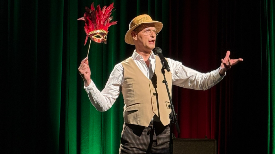 Die rund vierzig Stücke aus Schlager, Revue und Chanson spiegelten die ganze Bandbreite jener Jahre wider: Armut und Verzweiflung ebenso wie überschäumende Lebenslust – ein Tanz auf dem Vulkan. Mit Verve sang und spielte sich Jo van Nelsen durch das Repertoire. Sogar ein Duett mit sich selbst, in verteilten Rollen, meisterte er mit sichtbarer Spielfreude und zur Begeisterung des Publikums. Mit Charme und Bühnenpräsenz zog er die Zuhörerinnen und Zuhörer von der ersten bis zur letzten Minute in seinen Bann und glitt scheinbar mühelos von einer Rolle in die nächste.