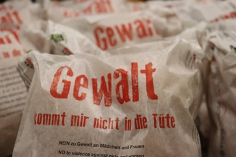 Brötchentütenaktion „Gewalt kommt mir nicht in die Tüte“ in Maintal