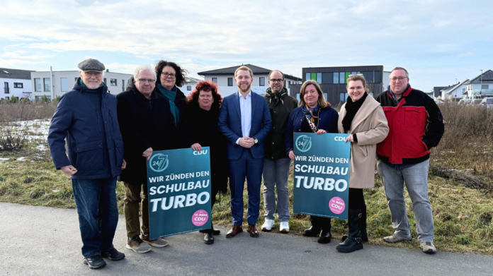 Auf Einladung der CDU Erlensee hat ein gemeinsamer Vor-Ort-Termin mit dem Spitzenkandidaten Jannik Marquart (CDU) und der CDU Erlensee im Rahmen der Januar-Schultour zur geplanten vierten Grundschule in Erlensee stattgefunden. Dabei stellte Marquart die aktualisierten Planungen für das neue Schulgebäude vor, das im Rahmen des Schulbau-Turbos bereits bis Ende 2027 fertiggestellt werden soll. Geplant ist ein zweigeschossiger Neubau mit rund 5.000 Quadratmetern Bruttogrundfläche. Die neue Grundschule wird vierzügig ausgelegt und schafft dringend benötigte Kapazitäten für die weiterwachsende Stadt.