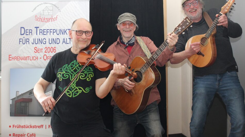 Es war der letzte Dämmerschoppen nach der Zeitumstellung im Schützenhof in Oberrodenbach mit „Amarank“ aus Hanau. Vor ihnen hatten „ROCKET88“ und „NEW CHAPTER mit Matthias Baselmann“ den Dämmerschoppen musikalisch unterhalten. Die drei Musiker waren letztmals vor 6 Jahren – vor Corona – aufgetreten. Jetzt spielten sie wieder heitere Melodien und freche Songs von der grünen Insel, Musik, die aus den Urzeiten der Kelten zu uns dringen, ursprünglich wie die Quellen und Bäche Irlands sprudeln und hüpften und nahmen das zahlreich erschiene Publikum beschwingt mit.