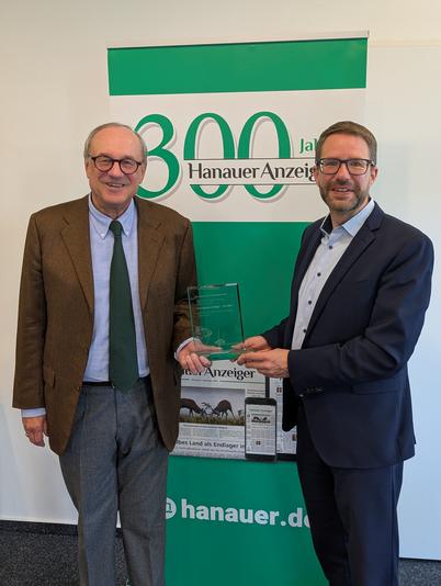 Der „Hanauer Anzeiger“ begleitet und dokumentiert seit seiner Erstausgabe vor drei Jahrhunderten – seinerzeit noch unter dem Titel „Wochentliche Hanauer Frag- und Anzeigungs-Nachrichten“ – die Entwicklungen in der Region. Die Zeitung hat in dieser Zeit eine Reihe von äußeren und inneren Veränderungen durchlaufen. Seit einigen Jahren stellt sich die Zeitung, die mittlerweile dem Ippen-Verlag angehört, erfolgreich dem digitalen Wandel. Neben der gedruckten Ausgabe erreicht die Redaktion ihre Leserinnen und Leser heute über eine gut genutzte Online-Plattform und Homepage. Zum Fundament für starke Zukunftsperspektiven kommt eine starke meinungsbildende Präsenz in den Kommunen, etwa bei Podiumsdiskussionen und Diskussionsveranstaltungen, und in den sozialen Medien hinzu, ebenso der Mut, in Zeiten rückläufiger Anzeigenerträge im klassischen Segment auf investigative Recherche und neue Formate zu setzen, für die der Hanauer Anzeiger schon einige renommierte Preise erhalten hat. „Damit beweist der Hanauer Anzeiger, dass journalistische Qualität und digitale Innovation kein Widerspruch sind. Sie bereichern sich gegenseitig“, sagte Landrat Stolz.