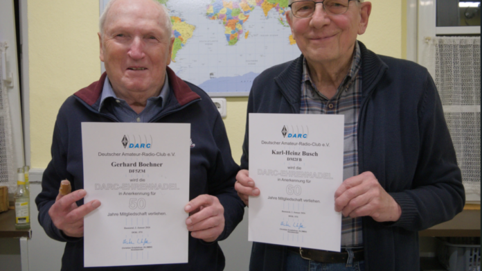 wurden für 50 Jahre (Gerhard) bzw. 60 Jahre (Karl-Heinz) Mitgliedschaft im Dachverband der Funkamateure