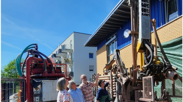 Ein zentraler Bestandteil ist die Umstellung der Wärmeversorgung auf Geothermie. Die dafür notwendige Bohrung erfolgt in unmittelbarer Nähe des Gebäudes, um die Wege zur Wärmepumpe möglichst kurz und effizient zu halten.