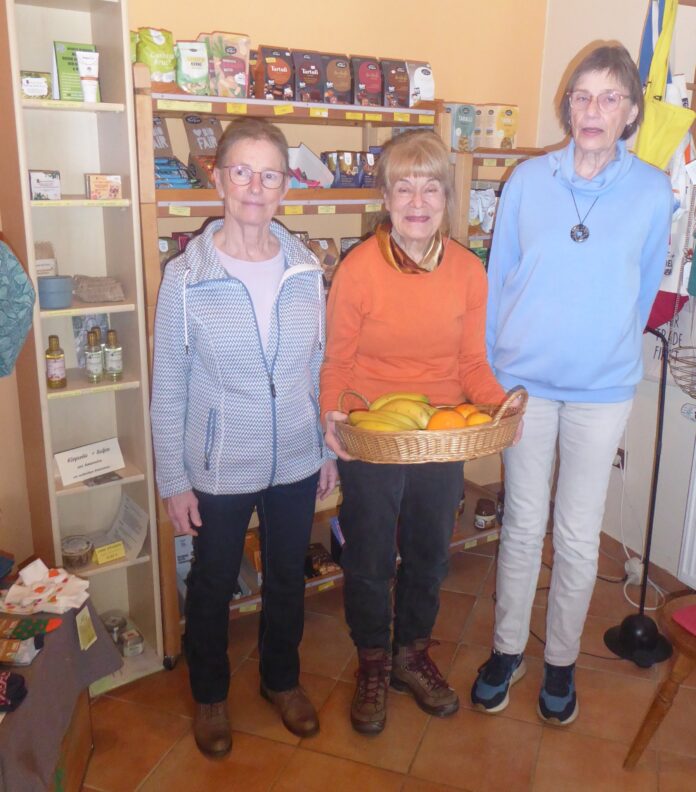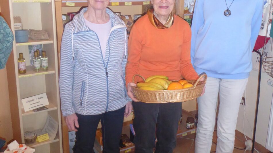 Mit dem Verkauf von Produkten aus dem FAIREN HANDEL werden Entwicklungsländer unterstützt. Zu den Angeboten gehören Kaffee, Tee, Süßigkeiten, Schokolade, Gewürze, Obst und immer frische Bananen.
