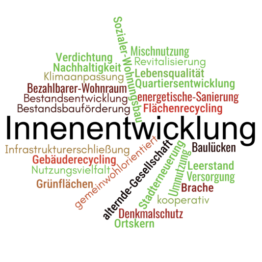 Innenentwicklung ist der Schlüssel für lebendige Ortskerne, für nachhaltiges Wachstum und einem verantwortungsvollen Umgang mit Flächen, Ressourcen und dem Klima. Innenentwicklung bedeutet – ganz kurz gesagt -, dass vorhandene Flächen und Gebäude innerhalb einer Stadt oder Gemeinde besser genutzt werden, bevor neue Baugebiete am Ortsrand ausgewiesen werden. Das bringt Vorteile für jede und jeden: Leerstände werden wiederbelebt, Baulücken geschlossen und Brachflächen umgewandelt, statt neue Flächen zu versiegeln. So entstehen neue Wohn- und Arbeitsmöglichkeiten direkt im Ort, wo das Leben stattfindet. Ohne zusätzlichen Landschaftsverbrauch – ein Gewinn für Umwelt, Infrastruktur und Lebensqualität.