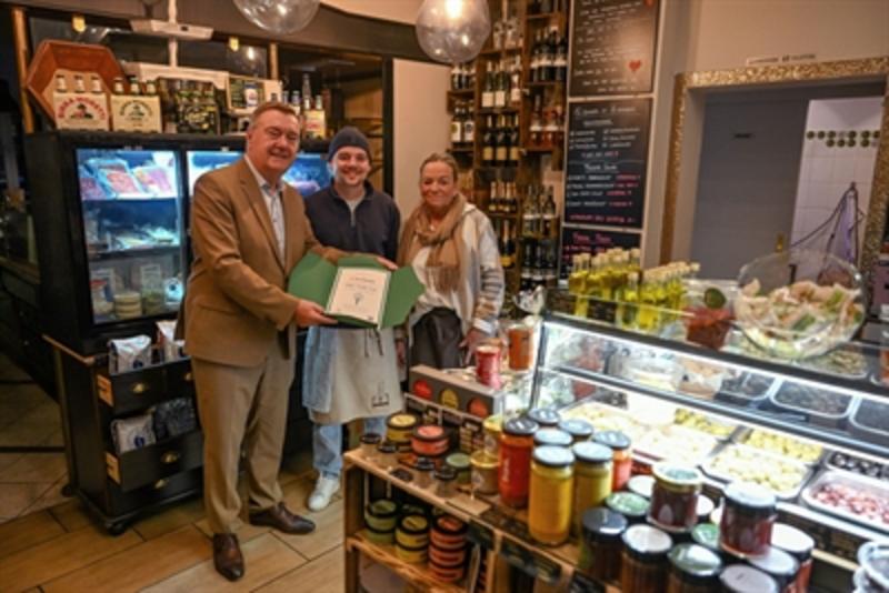 Oberbürgermeister Kaminsky zeigte sich beeindruckt: „Ich finde Ihren Laden wunderbar! Sie haben ein wunderbares Angebot von ausgewählten Produzenten und legen offensichtlich großen Wert auf Qualität. Auch die Auswahl ist trotz der begrenzten räumlichen Möglichkeiten überraschend groß. Geschäfte, wie das Ihre, tragen dazu bei unserer Stadt eine individuelle Note zu geben und sind hoch attraktiv für Kundinnen und Kunden, die das Besondere suchen. Sie sehen mich heute hier bestimmt nicht zum letzten Mal!“, versprach Oberbürgermeister Kaminsky und überreichte ein Zertifikat für eine Baumpatenschaft von Planet Tree. „Damit verbunden ist unser Wunsch, dass Sie in Hanau Wurzeln schlagen, wie dieser Baum, den wir in Ihrem Namen haben pflanzen lassen“, erklärte er.