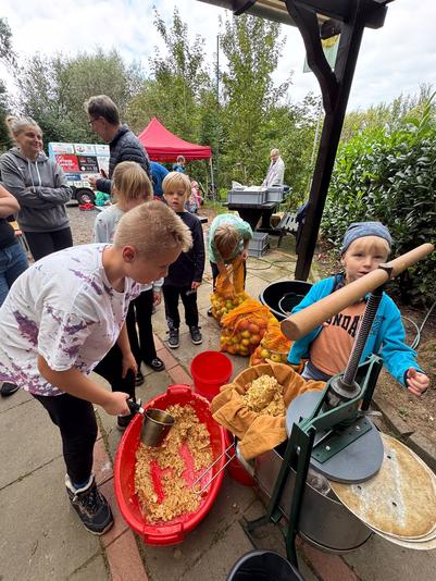 Bei herrlichem Spätsommerwetter gab es viel zu entdecken: Gemeinsam wurden Äpfel gelesen und zu Apfelsaft verarbeitet, auch Nistkästen und Insektenhotels konnten unter Anleitung gebaut werden. Emil Brummkübel war mit reichlich Spielsachen ebenfalls vor Ort und für das Abschlussgrillen steuerten alle Familien etwas zum Buffet bei.