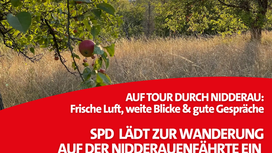 Frische Luft, weite Blicke und gute Gespräche – all das erwartet die Teilnehmenden bei der diesjährigen Wanderung auf der NidderAuenFährte, zu der die SPD Nidderau herzlich einlädt. Am Sonntag, den 17. Mai 2026, sind alle Natur- und Wanderfreunde willkommen, gemeinsam die reizvolle Landschaft rund um Nidderau zu entdecken. Treffpunkt ist um 10:00 Uhr am Bahnhof Heldenbergen.