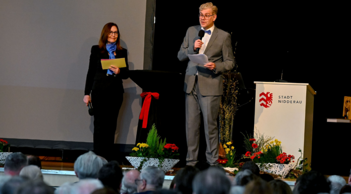 Der Frühling steht für Aufbruch. Die Nidderauer Bürgergesellschaft befindet sich offensichtlich das ganze Jahr über im Aufbruch. Das verdeutlichte der Rückblick auf das Jahr 2025. Bürgermeister Bär erinnerte mit 100 Fotos an die vielfältigen Ereignisse: zahlreiche Jubiläen mit der ganzjährigen Feier „1175 Jahre Ostheim“ an der Spitze, neue Drehleiter für die Feuerwehr, Auszeichnung der Stadt mit dem „Spar-Euro“ für ihre Fortschritte in der Digitalisierung, drei neue Kunstrasenplätze für die Fußballvereine, Einweihung des Premiumwanderwegs „NidderAuenFährte“, der die Nidderau quasi dem Spessart zugehörig gemacht habe, und vieles mehr.