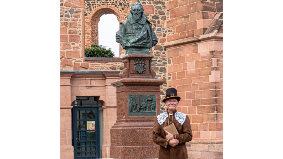 Der Stadtführer Ulrich Lüer schlüpft in das Kostüm und die Rolle des Hanauer Neubürgers und Glaubensflüchtling Carel Pels. Der 1613 in Hanau geborene Sohn einer Kaufmannsfamilie erzählt seine Geschichte und berichtet über die Gründung der Neustadt Hanau. Interessierte Zuhörerinnen und Zuhörer erfahren, wie die Familie Pels nach Hanau kam, was sie antrieb und in welchen Geschäften sie tätig war. Teilnehmende erhalten sogar die Kopie eines Briefes, den Carel Pels selbst geschrieben hat. Anhand des Schriftstücks erfahren sie, wie Kaufmannsgeschäfte in der Mitte des 17ten Jahrhunderts abgewickelt wurden.