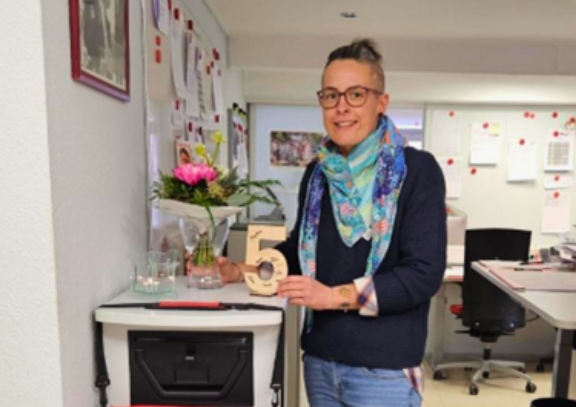 Im Rahmen einer kleinen internen Feier dankte die Pflegedienstleitung Gaby Grimm der Mitarbeiterin für ihren beständigen Einsatz und ihre Arbeit in der Versorgung von Patientinnen und Patienten in der Region.