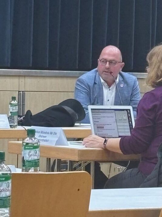 Der Sitzung ging zunächst eine Zusammenkunft des Haupt- und Finanzausschusses voraus, bei der über diesen Themen, nämlich Beitritt zum Genehmigungsverfahren und Maßnahmen zum Projektaufruf „Sanierung kommunaler Sportstätten“ ebenso verhandelte wurde. Dabei verteidigte der Erste Stadtrat Rainer Vogel (Grüne) seine Haushaltsaufstellung. Schon bei der Einbringung im Mai habe er daraufhin gewiesen, dass die Zahlen sehr ambitioniert seien und vor allem der Tatsache geschuldet seien, dass die Abläufe wie Fördergenehmigungen und Ausschreibungen immer sehr viel Zeit in Anspruch nehmen würden und das in der Vorlage geforderte Geld nicht in diesem oder im nächsten Jahr komplett fällig würden. Deshalb sehe er es nicht als Manko an, dass die Vorlage von der Kommunalaufsicht zurückgewiesen worden sei. „Immer wieder dieselbe Leier: Schuld hat immer der andere“, wies für die CDU ihr Sprecher die Auslassung des Stadtrates zurück. Bürgermeister Andreas Bär (SPD) mischte sich schließlich ebenfalls in die Diskussion ein und wies darauf hin, dass man Einsparung habe vermeiden wollen, die den sozialen Bereich beträfen und dass sich Verhandlungen deshalb so lange hingezogen habe. Dem Beitrittsbeschluss wurde deshalb am ende mehrheitlich zugestimmt.