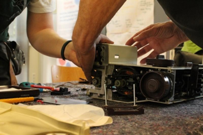 Zerlegen, reparieren, zusammensetzen: Im Reparatur-Café legen Besucher*innen und Ehrenamtliche gemeinsam Hand an.