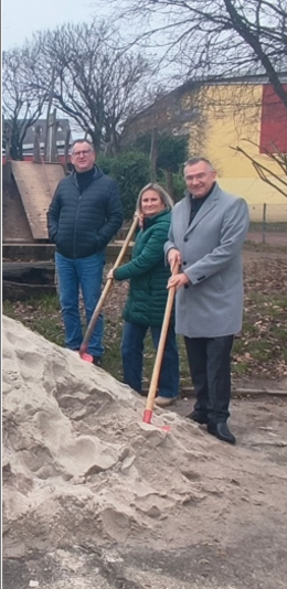Der neue Spielsand wurde bereits verteilt und steht den Kindern seit dieser Woche zur Verfügung. Die offizielle Übergabe fand auf dem Schulgelände statt.