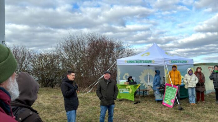 Über 50 interessierte Bürgerinnen und Bürger folgten am 15.02.2026 der Einladung von Bündnis 90/Die Grünen Nidderau zu einer Wanderung zu den Windrädern bei Nidderau-Erbstadt. Bei bestem Wetter und starkem Wind begrüßte Ortsvereinvorsitzende Gaby Hohmann die Teilnehmenden herzlich und freute sich über das große Interesse an der lokalen Energiewende.