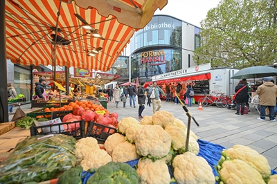 Der Hanauer Wochenmarkt residiert bis einschließlich 27. Dezember auf dem Freiheitsplatz, um Platz für den märchenhaften Weihnachtsmarkt zu machen, der ab dem 24. November zum vorweihnachtlichen Bummel einlädt.