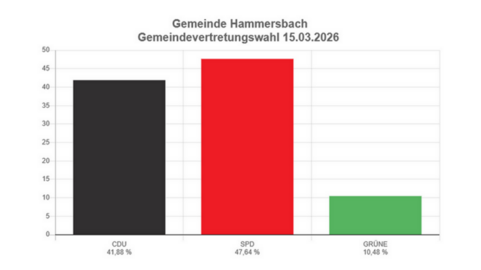 Damit liegt die Hammersbacher SPD als kommunale Kraft deutlich über den Ergebnissen der vergangenen Landtags- und Bundestagswahlen. Dort bewegte sie sich im allgemeinen Trend meist bei weniger als 20 Prozent der Zweitstimmen. Bei der Gemeindewahl konnte dieses Ergebnis somit um rund 30 Prozent gesteigert werden. Das ist mehr als beachtlich, insbesondere wenn man bedenkt, dass die SPD gleichzeitig im Landestrend etwa vier Prozent verloren hat.