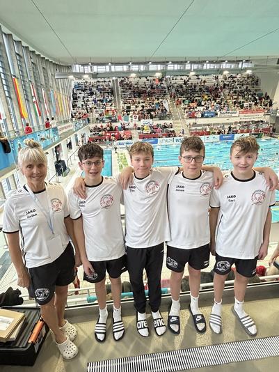 Der Schwimmverein Gelnhausen hat beim Bundesfinale der Deutschen Mannschaftsmeisterschaften der Jugend (DMSJ) in Wuppertal Vereinsgeschichte geschrieben. Erstmals gelang einer SVG-Mannschaft der Sprung auf das Podest – und das in einem wahren Krimi bis zur letzten Bahn. Die männliche Jugend C mit Carl Relecker (JG 2013), Mats Glock (JG 2012), Tim Auhl (JG 2012) und Jonas Tittel (JG 2013) sicherte sich sensationell die Bronzemedaille.