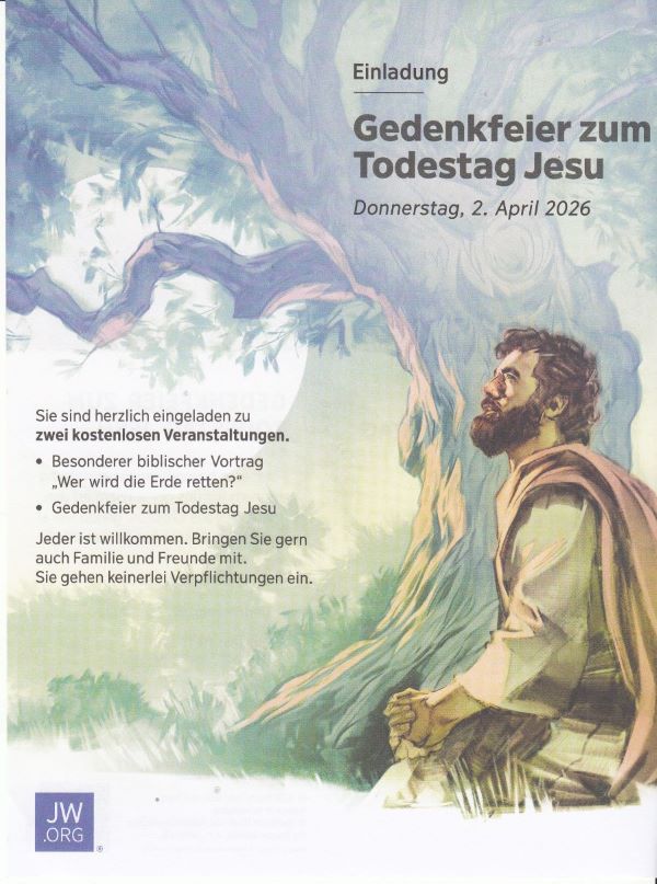 Jehovas Zeugen laden zum Gedenkfeier zum Todestag Jesu und zum Sondervortrag ein