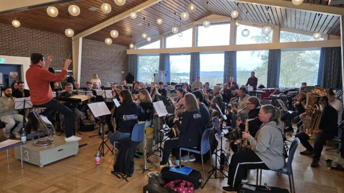 Den Auftakt gestaltet das Schülerorchester unter Leitung von Ellen Dörr. Anschließend übernimmt das Stammorchester mit Dirigent Michael Meininger. Mit „Where Never Lark or Eagle Flew“ von James Curnow hebt das Orchester klanggewaltig ab in die Lüfte und lässt die Faszination des Fliegens lebendig werden. In „Vulnerable Joy“ von Jodie Blackshaw taucht das Publikum in die Welt der Ozeane ein, während „Noah ́s Ark“ von Bert Appermont musikalisch von Hoffnung und Neubeginn erzählt.