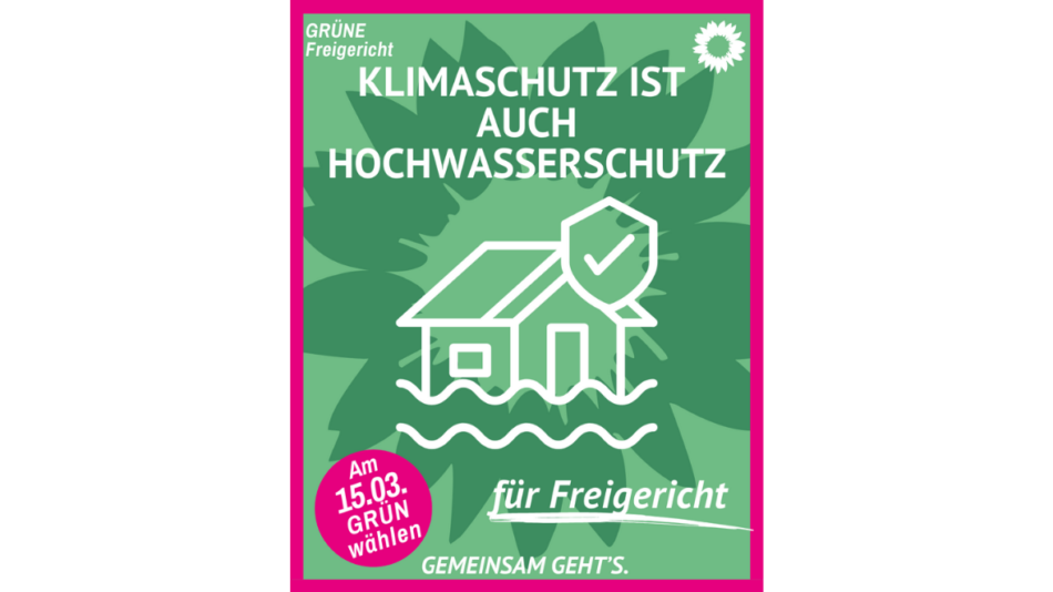 Die Freigerichter GRÜNEN setzen sich dafür ein, den Hochwasserschutz in der Gemeinde weiter zu stärken. Neben technischen Maßnahmen sehen sie dabei vor allem auch Klimaschutz und Klimaanpassung als entscheidende Bausteine.