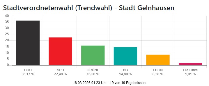 Bemerkenswert ist vor allem, dass der Wahlzettel in Gelnhausen anders aussah, als man es aus vielen anderen Kommunen kennt: Zur Stadtverordnetenwahl zugelassen waren CDU, SPD, Grüne, die Liberale Bürgerliste Gelnhausen sowie Bürger für Gelnhausen. Die FDP trat also nicht unter eigenem Namen an, sondern über die LBGN; eine AfD-Liste war für die Stadtverordnetenwahl in Gelnhausen ebenfalls nicht zugelassen.