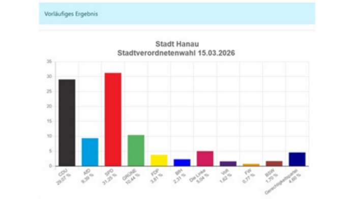Es handelt sich um das vorläufige Endergebnis. Alle Ergebnisse sind auf hanau.de und wahlen.hanau.de zu finden. Der Gemeindewahlausschuss wird das amtliche Endergebnis in seiner öffentlichen Sitzung im Neustädter Rathaus am Freitag, 20. März, 14 Uhr, feststellen.