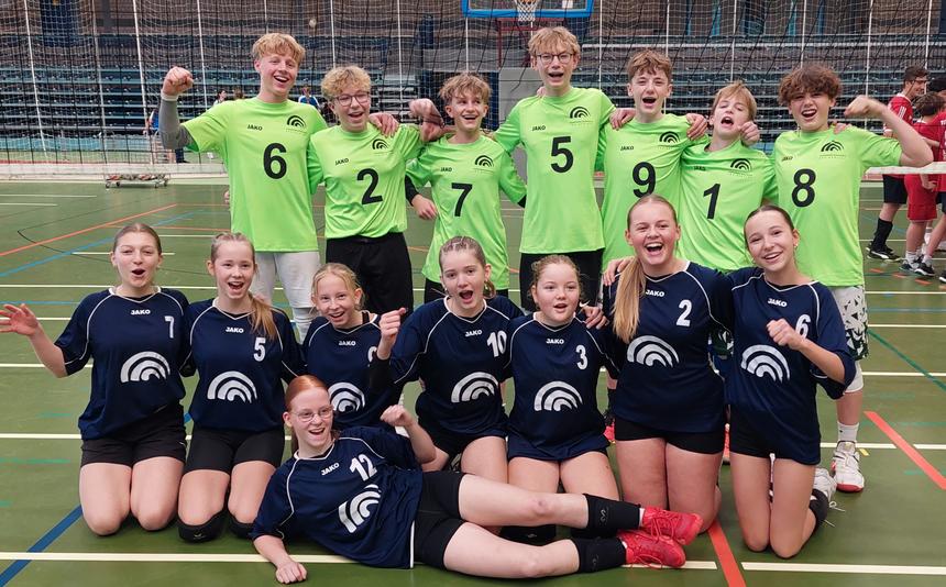 Auch die WK 3 weiblich sicherte sich den Sieg beim Regionalentscheid und fahren zum Landesentscheid Anfang Februar nach Wiesbaden. Nach zwei 2:0 Siegen gegen die Albert-Schweizer-Schule Offenbach mit 25:13, 25:22 und die Liebigschule Frankfurt mit 25:14, 25:14 ging es ins finale Spiel gegen die Hohe Landessschule Hanau. Nach einem verlorenen ersten Satz gewannen sie noch mit 2:1 im Tie-Break mit 22:25, 25:12, 15:3 und dürfen sich zurecht nach 3 Siegen auf das Landesfinale der sechs besten Schulteams Hessen freuen.