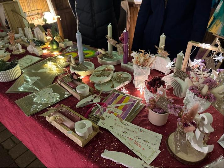 Die Ausstellung ist eine wahre Fundgrube für alle, die handgemachte Schätze und kreative Ideen für die Weihnachtszeit suchen. Von liebevoll gestalteten Adventsdekorationen über individuelle Weihnachtskrippen und Grußkarten bis hin zu einzigartigen Schmuckstücken und selbstgesiedeten Seifen – hier ist für jeden Geschmack und Geldbeutel etwas dabei.