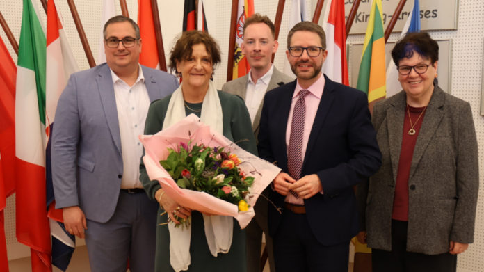 Im Rahmen der feierlichen Verabschiedung lobten auch der Personaleiter Jan Jakobi, Kulturamtsleiterin Dr. Anselma Lanzendörfer, die stellvertretende Gleichstellungsbeauftragte Ulrike Schmid sowie der Vorsitzende des Personalrates, Philipp Steuber, ihren leidenschaftlichen Einsatz für die Kulturlandschaft im Main-Kinzig-Kreis und ihren wertschätzenden und humorvollen Umgang mit den Kolleginnen und Kollegen.