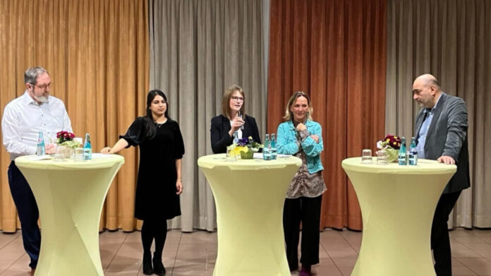 Am Samstagabend, den 07. März 2026, folgten über 60 Interessierte der Einladung von Bündnis 90/Die Grünen im Main-Kinzig-Kreis und in Hanau zu einer Podiumsdiskussion unter dem Titel „Frauen schützen – lokal handeln, global denken”. Gemeinsam mit dem hessischen Bundestagsabgeordneten Omid Nouripour, dem Oberbürgermeisterkandidaten für Hanau Sascha Feldes, der Spitzenkandidatin für die Kreiswahl Mahwish Iftikhar sowie Lea Kircher und Brigitte Machnitzke vom Frauenhaus Wächtersbach diskutierten die Teilnehmenden über Strategien, wie Gewalt gegen Frauen effektiv bekämpft und Schutzräume verbessert werden können.