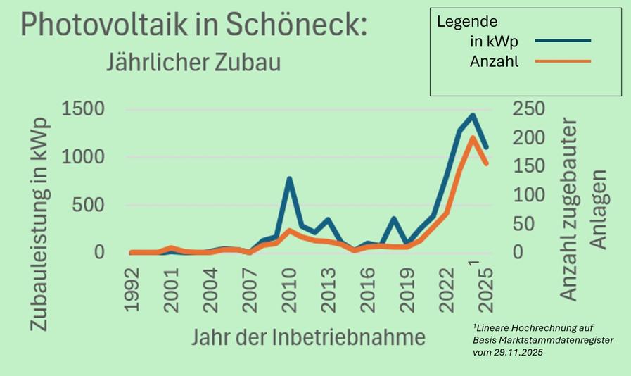 Während Balkonsolaranlagen in Deutschland im Jahr 2025 weiterhin einen hohen Zuwachs verzeichnen, sind die Neuinstallationen von Aufdachanlagen gegenüber 2024 eingebrochen. „Diesen Trend sehen wir leider auch in Schöneck. Und das ist vor allem der durch die aktuelle Bundesregierung geschürten Verunsicherung geschuldet, die einerseits den Zubau von fossilen Gaskraftwerken erhöhen, andererseits die Einspeisevergütung von nicht selbst verbrauchtem PV-Strom streichen möchte. Damit würde die Energieabhängigkeit erhöht und die Wirtschaftlichkeit verschlechtert. Doch noch ist nichts beschlossen. Mit dem Vortrag möchten wir darüber informieren, wie sich neue PV-Anlagen nach wie vor rechnen und unabhängig machen“, erläutert Grünen-Fraktionschef Wolfgang Seifried den Anlass für die Veranstaltung. Als Referenten konnten die Grünen mit dem Büdesheimer Thomas Wiederhold einen Solarenthusiasten und -praktiker gewinnen, der als Privatmann dabei keine kommerziellen Absichten verfolgt.