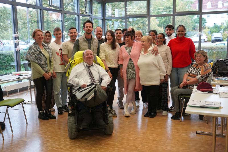 Sascha Pretsch, leidenschaftlicher Pur- und VW-Käfer-Fan, entschied sich bewusst für einen Tag im Bildungshaus Main-Kinzig: „Das Gebäude ist barrierefrei und absolut rollstuhlgerecht – das hat mich überzeugt.“, betonte Pretsch. Nach einer Hausführung hospitierte er in einem Deutschkurs für Menschen mit Migrationsgeschichte, lernte verschiedene weitere Fachbereiche kennen und zeigte besonderes Interesse an EDV-Themen. „Ich möchte meine Kenntnisse in Excel und Word erweitern, da ich an der Arbeit oft Tabellen, wie zum Beispiel Speisepläne, erstellen muss“, erklärte er motiviert. Besonders beeindruckt war er von der „Ansprechbar“ im Foyer des Bildungshauses: „Das hört sich“, so Pretsch, „viel einladender an als Empfang.“