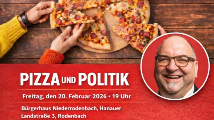 Rodenbach, 13. Februar 2026 – Der Ortsverein der SPD Rodenbach erinnert nochmals an die von den Jusos organisierte Veranstaltung für Jungwähler am 20. Februar im Spiegelsaal des Bürgerhauses in Niederrodenbach. Unter der Überschrift „Pizza & Politik“ gibt es wie immer bei dieser Veranstaltungsreihe kostenlose Pizza. Daneben sind in entspannter Atmosphäre offene Gespräche mit dem SPD Spitzenkandidaten Klaus Schejna möglich