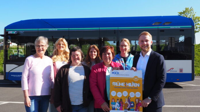 Die Fachkräfte des Netzwerks Frühe Hilfen werben an öffentlichen Stellen für ihr Angebot für junge Familien: Mit einer Plakataktion in Wartezimmern und Bussen im Liniengebiet des Main-Kinzig-Kreises machen die Netzwerkpartner auf die Unterstützung aufmerksam, die sich frischgebackene Eltern, Alleinerziehende oder Elternpaare in Krisensituationen holen können, gerade auch in den ersten Monaten nach der Geburt. „Wir helfen in unserem Netzwerk jungen Familien in schwierigen Situationen. Dafür ist es wichtig, dass wir diese Familien und die betroffenen Elternteile auch erreichen und sie von den Angeboten wissen. Das ist das Ziel unserer Werbekampagne“, sagte Jugenddezernent Jannik Marquart beim Auftakttermin in Wächtersbach.