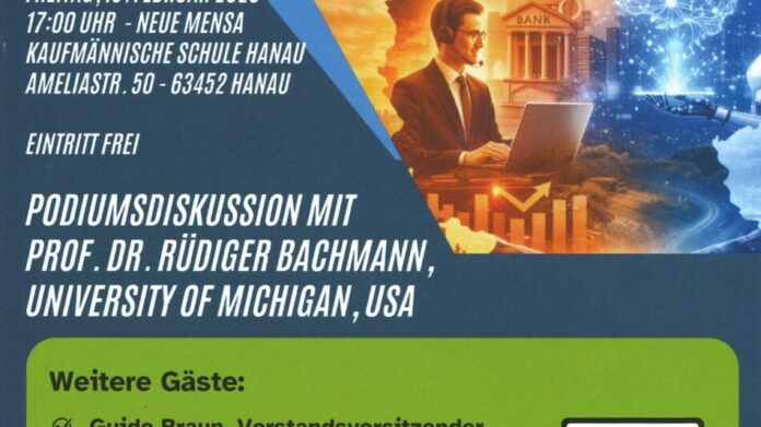 Die Kaufmännischen Schulen Hanau laden am Freitag, den 13. Februar 2026, um 17:00 Uhr zu einer öffentlichen Podiumsdiskussion zum Thema „Standort Deutschland und Region Hanau im Wandel“ ein. Die Veranstaltung findet in der Neuen Mensa der Kaufmännischen Schulen Hanau statt. Der Eintritt ist frei.