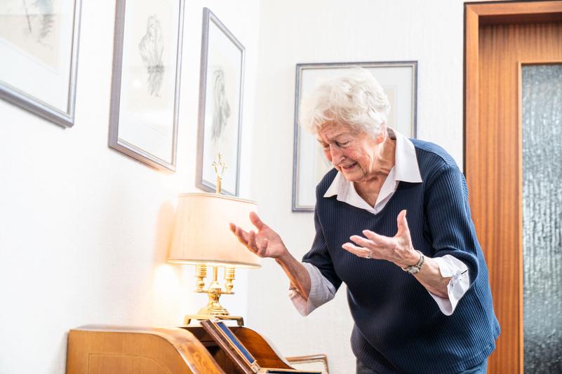 Sicherheit Senioren bestohlene Frau: Der junge Mann, der nur ein Glas Wasser wollte, ist weg – der Schmuck der alten Dame leider auch. Foto: Polizeiliche Kriminalprävention der Länder und des Bundes