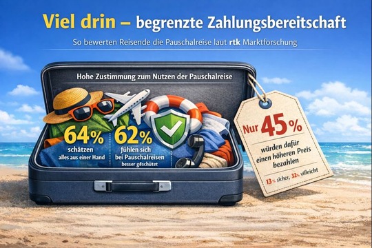 Neue rtk-Studie zeigt: Komfort und Absicherung der Pauschalreise ist gefragt, nur kosten darf es nichts