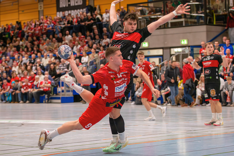 Dann kam der TVG ins Rollen. Ein Überzahlspiel läutete die stärkste Phase der Barbarossastädter ein. Die Abwehr stand nun kompakter, Torhüter Alexander Bechert glänzte mit starken Paraden und vorne überzeugte der TVG mit hohem Tempo und klarem Abschluss. Kapitän Jonathan Malolepszy machte einen 5:0-Lauf perfekt und traf in der 24. Minute per Siebenmeter zum 15:10. In der Folge setzten die Rot-Weißen konsequent nach und gingen durch ein weiteres Siebenmetertor des Kapitäns zum 18:12 mit einer Sechs-Tore-Führung in die Pause.