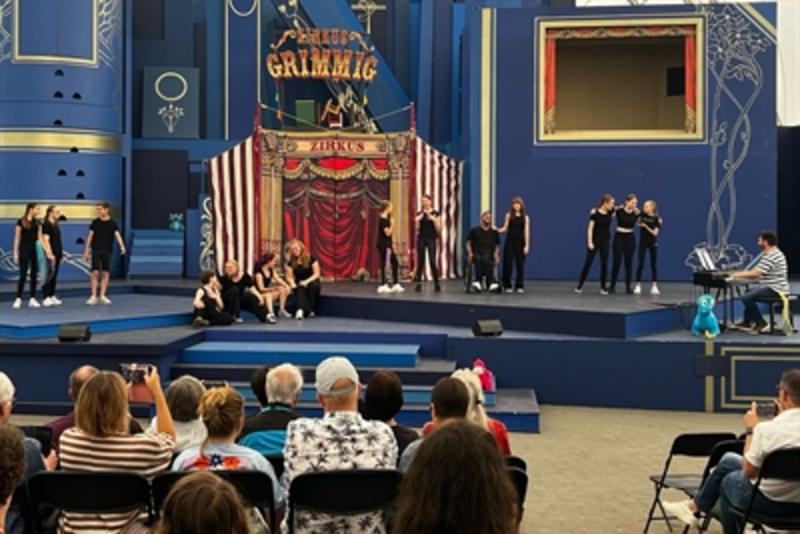 Die Teilnehmerinnen und Teilnehmer des Musical-Workshops bei der Abschlusspräsentation auf der Bühne im Amphitheater im vergangenen Jahr.