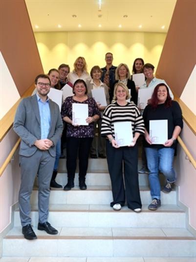Auch Astrid Weiermann, Leiterin des EB Kita, sprach ein herzliches Dankeschön aus. In ihrer persönlichen Ansprache hob sie die Bedeutung von Teamgeist hervor. „Dieser Beruf ist nichts für Einzelkämpferinnen. Er gelingt nur im Miteinander und Sie zeigen seit Jahrzehnten, was echte Teamarbeit ausmacht.“ Sie betonte zudem die Vielfalt der Kompetenzen, die die Frauen in die Kitas einbringen – von Bewegung über Kreativität bis hin zu Kinderrechten und Ernährung. „Sie sind mit Herz und Hirn dabei, verlässlich, erfahren und nah an den Familien. Das macht unsere Kitas stark“, sagte Weiermann. „Würden wir alle Familien auf dem Marktplatz versammeln wollen, die Sie über Jahrzehnte begleitet haben, wäre er sicher zu klein.“