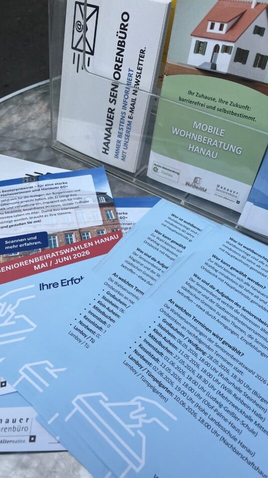 Im Mai und Juni finden in Hanau die Wahlen zum Seniorenbeirat statt. An insgesamt acht Terminen in den Ortsbezirken haben Hanauerinnen und Hanauer die Möglichkeit, sich als Kandidatin oder Kandidat aufstellen zu lassen und aktiv an der Gestaltung der Seniorenpolitik mitzuwirken. Der erste Wahltermin ist am 6. Mai in Steinheim, über die weiteren informiert die Stadt Hanau.