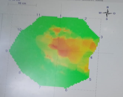 Um das Schadensbild genauer bewerten zu können, wurde ergänzend ein externes Fachbüro mit einer Untersuchung mittels Schalltomographie beauftragt. Dieses Verfahren ermöglicht eine genauere Einschätzung der inneren Holzstruktur und damit auch der Stand- und Bruchsicherheit. Die Untersuchung ergab, dass am Stammfuß der Roteiche ein mehrjähriger Fruchtkörper des wulstigen Lacksporlings festgestellt wurde, eines holzzersetzenden Pilzes, der insbesondere im Wurzel- und Stammfußbereich Schäden verursachen kann. Die schalltomographische Untersuchung bestätigte eine deutliche Schwächung der tragenden Holzstrukturen im unteren Stammbereich.